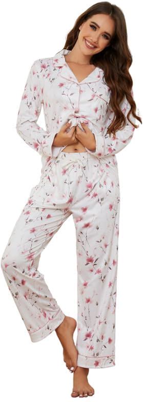 Women's Cool Nights Long-Sleeve Printed Button Up Pajama Top In Green Size Medium | Soma Pajama Sets