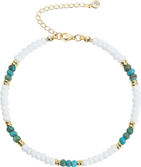 Wremily Natural Stone Beaded Anklets Bracelets For Women Handmade Beaded Anklet Bracelet Waterproof Boho Beads Ankle Bracelet Adjustable Summer