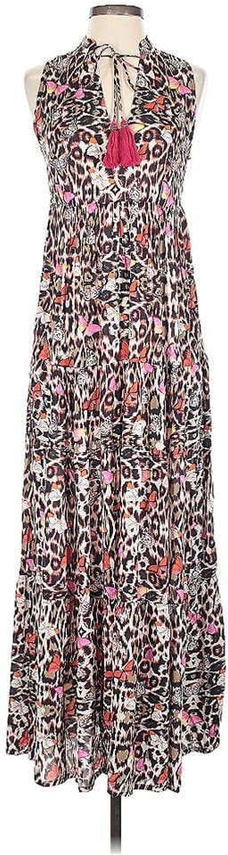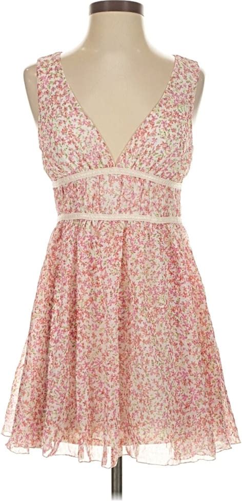 Ruby Cocktail Dress Plunge Neckline Sleeveless: Pink Floral Pattern Dresses - Women's Size Small