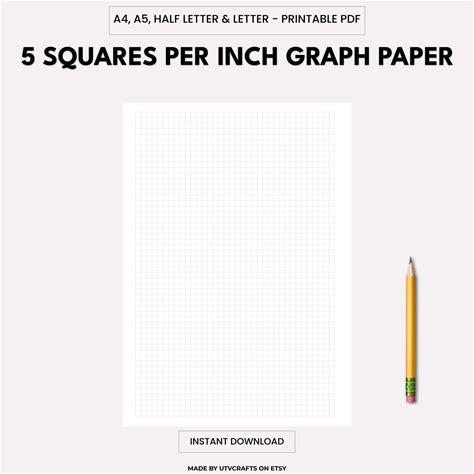 Printable 5-Square-Per-Inch Graph Paper (5mm Grid Note Paper, PDF): Digital Download