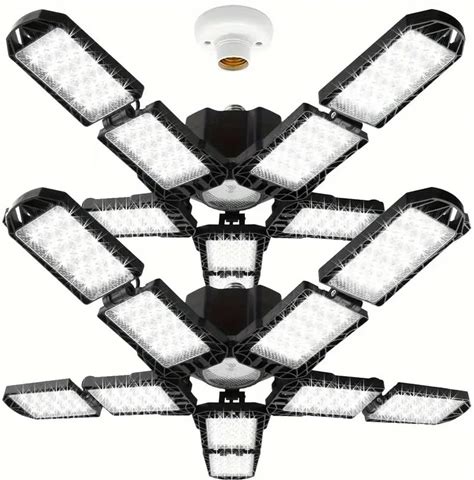 PINSAI 2 Packs LED Garage Light, Super Bright Screw In E26/E27 Ceiling Shop Work Lamp, 260W 26000 Lumen Deformable Basement Bulb Fixture With 10+1