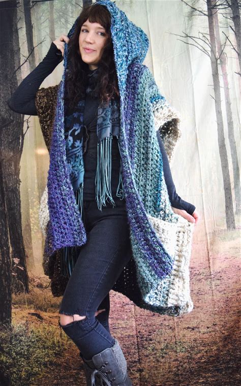 Crochet Ruana Pattern: Pixie Hooded Pocket Shawl (Instant Download PDF)