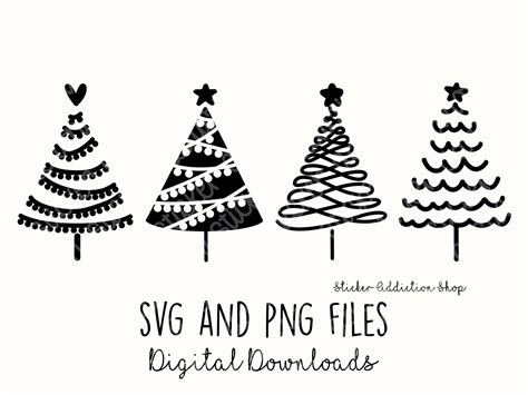 Christmas Tree Doodles | SVG And PNG Cut Files | Hand Drawn Icon | Cricut, Silhouette And Cameo | Instant Digital Download | Vector Icons