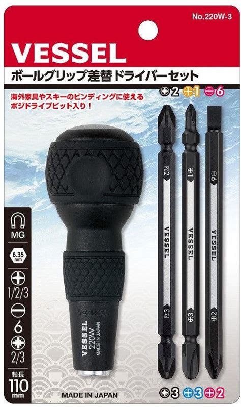 Vessel Interchangeable Screwdriver Set (Ball Grip And 3 Bits) 220W-3