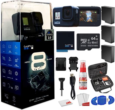 Gopro HERO8 Black Digital Action Camera - Waterproof, Touch Screen, 4K UHD Video, 12MP Photos Live Streaming, Stabilization - With Cleaning Set + 64GB Memory Card And More - Starter Bundle