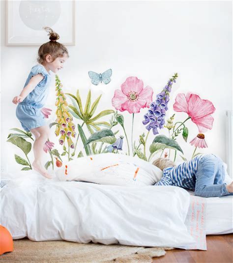 2Pcs Colorful Floral Wall Decals - Contemporary Vinyl Stickers With Pink, Peach, Yellow, Blue, And Green Flowers & Butterflies - Removable, Self-Adhesive Decor For Living Room, Bedroom, Or Home Walls, Flower Decorations,2Pcs/