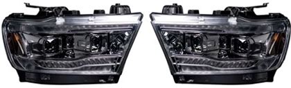 Recon Dodge Cummins 1500 19-23 5th Gen LED Hi/Low Beam Projector Headlights OLED DRL Scanning Switchback LED Signals Smoked/Black | 264376LEDBKCS