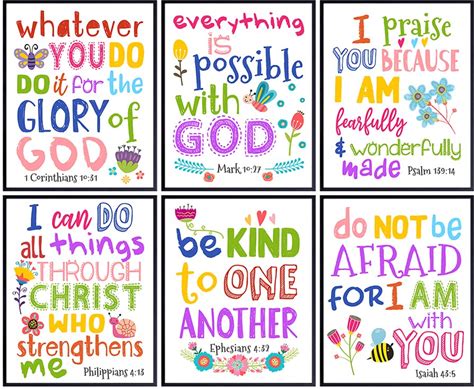 Religious Decor - Bible Verse Scripture Wall Art For Kids Bedroom, Boys, Girls Room, Bible Study, Church Sunday School - Inspirational Christian Gifts