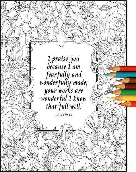 Psalm 139:14, I Praise You Because I Am Fearfully And Wonderfully Made, Printable Bible Verse Coloring, Scripture Page, Christian Wall Art