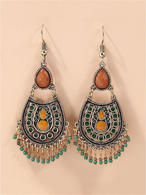 Women's Bohemian Teardrop Dangle Earrings - Vintage Tribal Style With Beaded Fringe, Lightweight Statement Jewelry For Parties And Festivals