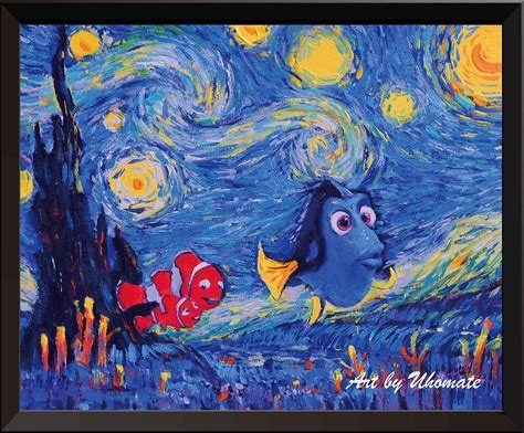 Uhomate Dory Finding Nemo Inspired Vincent Van Gogh Starry Night Posters Home Canvas Wall Art Nursery Decor Living Room Wall Decor A006 (8X10)
