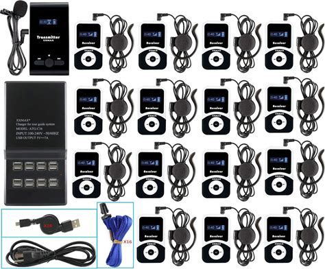 EXMAX ATG-100T 195-230Mhz Wireless Tour Guide System Simultaneous Translation Interpreting Equipment For Church Translator In Your Ear Translation Devices 1 Transmitter 15 Receivers + Charge Station