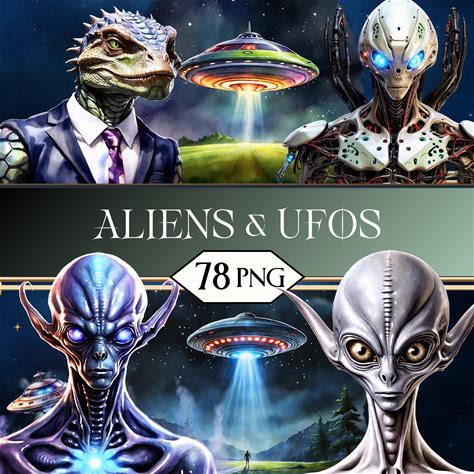 Aliens And Ufos PNG Clipart Bundle Extra Terrestrial Alien Monster Scrapbook Graphics For POD, Sublimation, Junk Journal Jpeg SVG