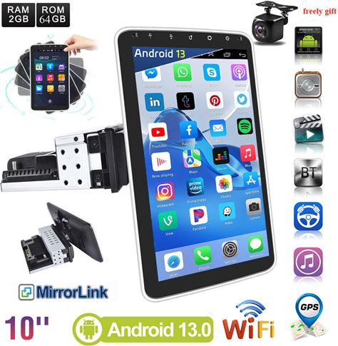 Single 1 Din Rotatable 10.1'' Android 13 Touch Screen Car Stereo Radio