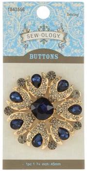 Blue & Gold Rhinestone Shank Button - 45mm