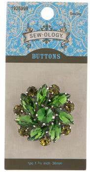 Green Floral Rhinestone Shank Button