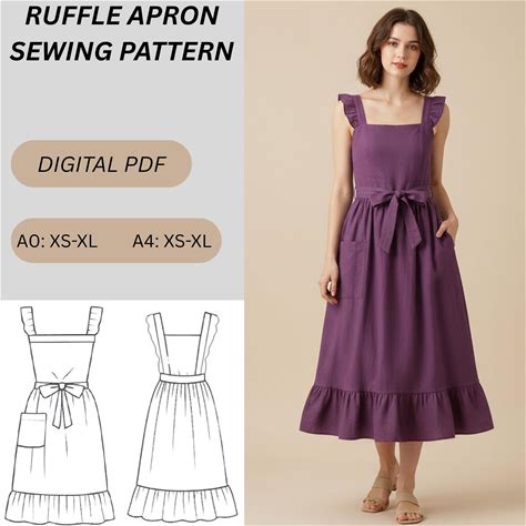 Ruffle Apron Sewing Pattern PDF, Vintage Style Apron With Pockets, Pinafore Apron Pattern, XXS-3XL
