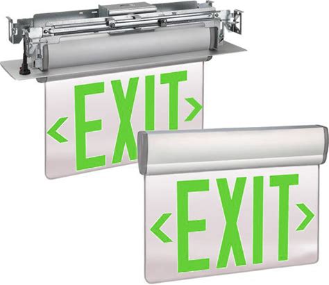 Exitronix Universal LED Edge-Lit Exit Sign Single Face Green Letters/Mirror Background Double Face Green Letters/Mirror Background Less Battery Surfac