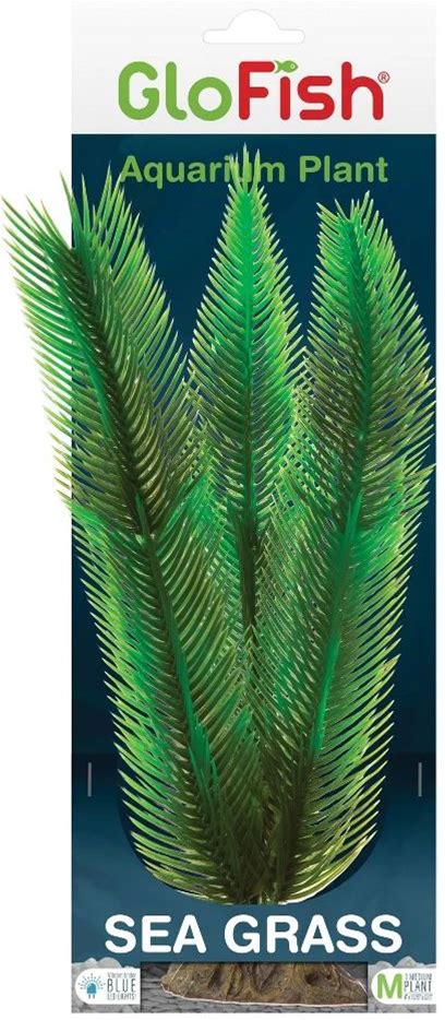 Glofish Sea Grass Plant Green Medium Fluorescent Under Blue LED Light Aquarium Plant Decor