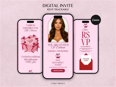Cherry Birthday Party Invitation, Invitation With RSVP, Guest List Tracker | Editable Canva Template