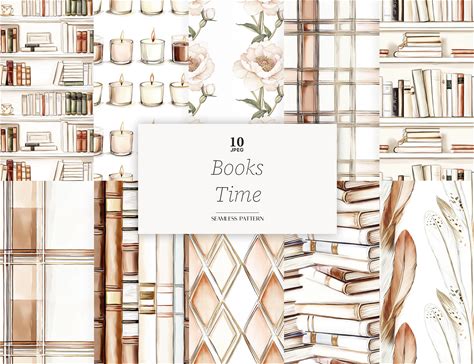 Book Lover Digital Paper: Library & Reading Seamless Patterns (JPEG Download)