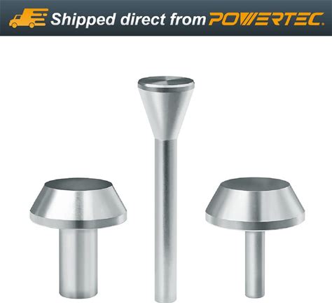 Powertec Router Subbase Centering Pin & Cone Set W/ 1/2" & 1/4" Inside Centering Guide & 1/4" Outside Centering Guide. Works W/Collet For Alignment Of