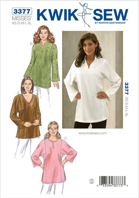 Sewing Pattern For Women's Tops, Womens Tunics, Pullover Tops, Hemline Slit Tunic, V Neck Tops, Kwik Sew 3377, Size XS-XL, Uncut FF