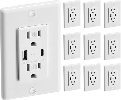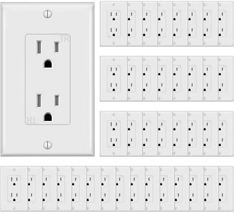 Decorator Receptacle Outlet With Wall Plate, 15 Amp Standard Electrical Wall Outlet, White (10 Pack)