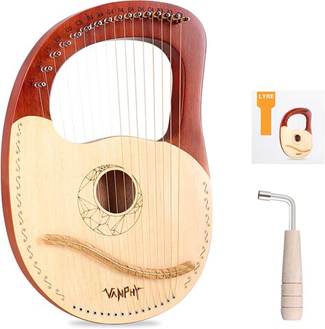 VANPHY Lyre Harp 16 Strings Mahogany Body Metal String For Beginner Harps Classical Style Harp Instrument With Tuning Wrench Strings Cleaning Cloth