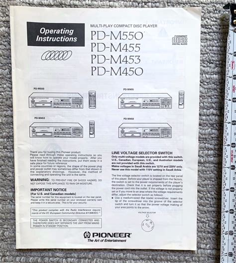 Pioneer Multi-Play CD Player Instructions PD-M550, PD-M455, PD-M453, PD-M450. Pioneer. Black & White. Remote Controls.