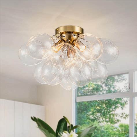 Bublume 17.72 in. 3-Light Gold Modern Clear Glass Bubble Flush Mount Ceiling Light, Transparent Glass Globe Cluster