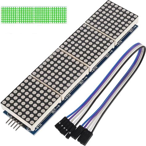 DAOKAI MAX7219 Dot Matrix Module 8 X 32 MCU Control Driver Board Green LED Common Cathode 4 in 1 Display Module With Dupont Cable For Arduino