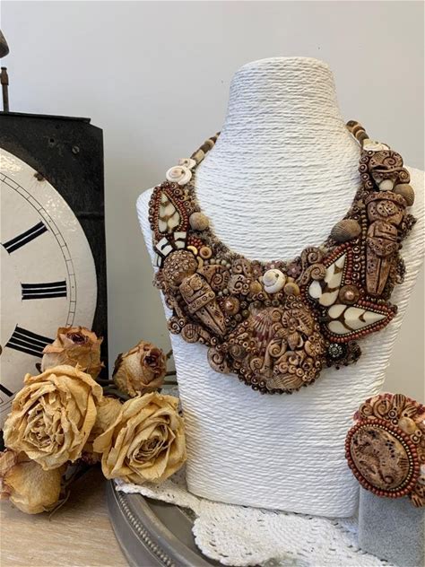 Women's Necklace In Beaded Embroidery And Polymer Clay Mayan, Aztec Style