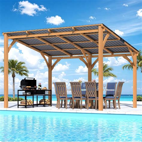 Outdoor Wooden Gazebo, Patio Lean To Hardtop Pergolas And Gazebos Clearance