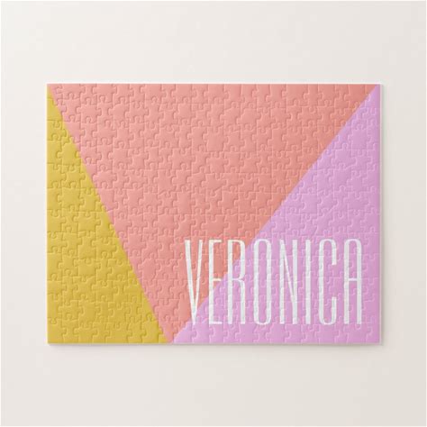 Cute Geometric Color Block Coral Pink Personalized Jigsaw Puzzle