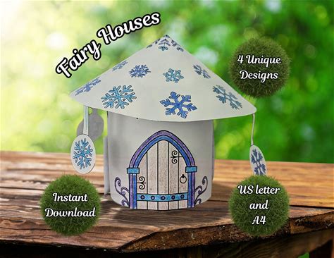 Fairy Houses Printable Paper Activity, Paper Craft Kit, Cut And Color Pages, DIY Arts And Crafts For Kids, Cut And Glue Activity, Easy Craft