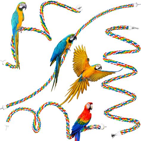 94.4Inch Length Colorful Cotton Bendable Rope Perch Swing Bird Chew Toys Amazon Parrots Cage Toys With Bell Swing Climbing Standing Bungee Bird Toys