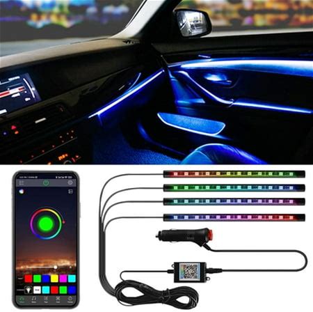 Somnr Interior Car Lights, 4 Pcs 48 LED Multi-Color Music Car Lights Strip Under Dash Lighting Kit With Sound Active Function & App Control, DC 12V