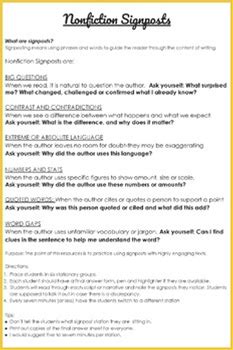 Non Fiction Sign Posts Information - Notice and Note