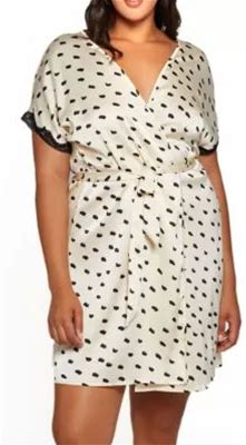 Icollection Women's Ameil Plus Size Dotted Satin Cap Sleeve Robe Trimmed In Soft Lace With Looped Self Tie Sash And Inner Ties, 1X