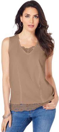 Roaman's Women's Plus Size Lace Trim Satin Tank