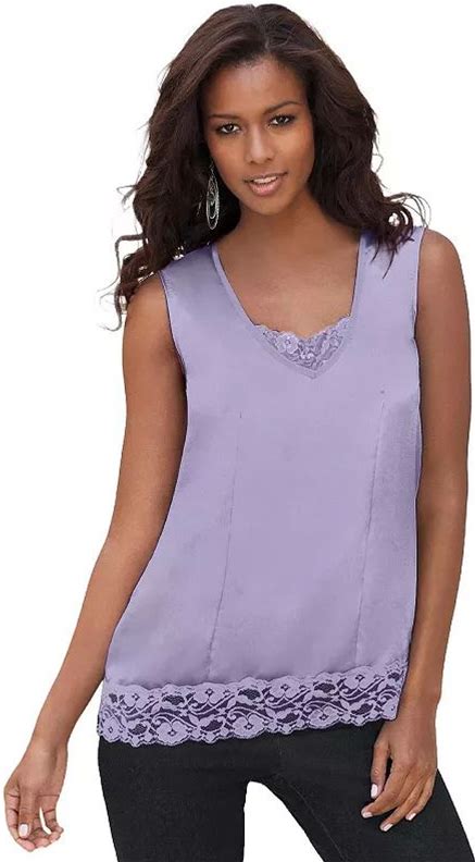 Roaman's Women's Plus Size Lace Trim Satin Tank, Size: 18, Soft Purple