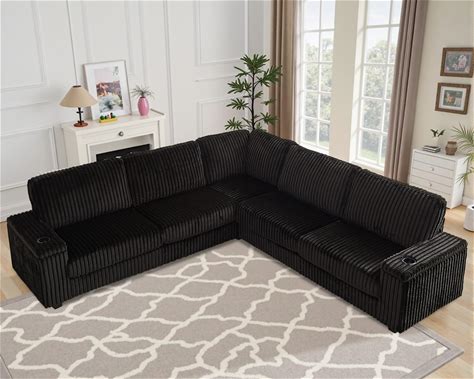 VOHOBY 110" Corduroy Sectional Couch, Modular L Shaped Couch With Deep Seat, 5 Seat Oversized Sofa With Charging Station, Cup Holder And Storage