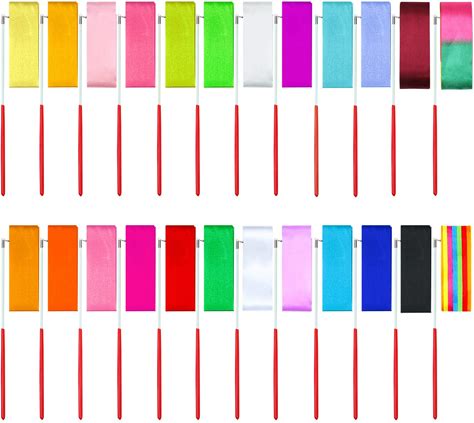 Aneco 24 Pieces Dance Ribbons Streamers Rhythmic Gymnastics Ribbon Wands Artistic Dancing, Baton Twirling, 24 Colors