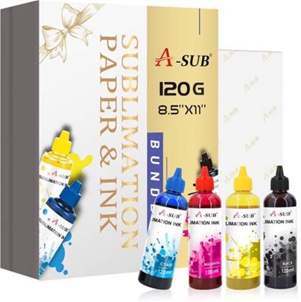 A-Sub Sublimation Paper And Ink Bundle Kit - 8.5X11 Inch Sublimation Paper 120G + 480Ml A-Sub Sublimation Ink For All Epson Inkjet Printers DIY Holida