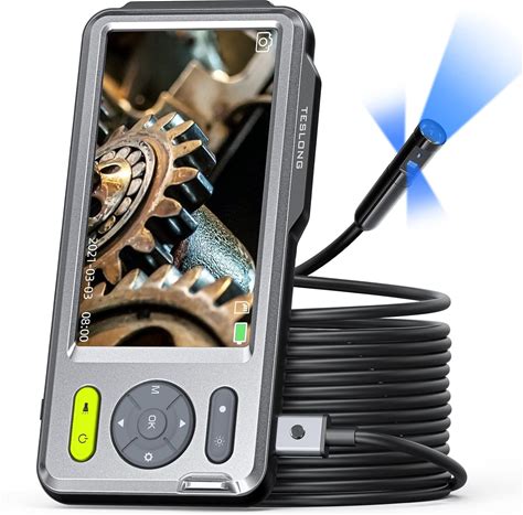 5.5mm Endoscope Borescope, Teslong Snake Inspection Camera With 4.5Inch Screen, Automotive Scope Camera With Flexible Cable Light, Home Waterproof Fiber Optic Bore Camera For Sewer Duct(16.5Ft)